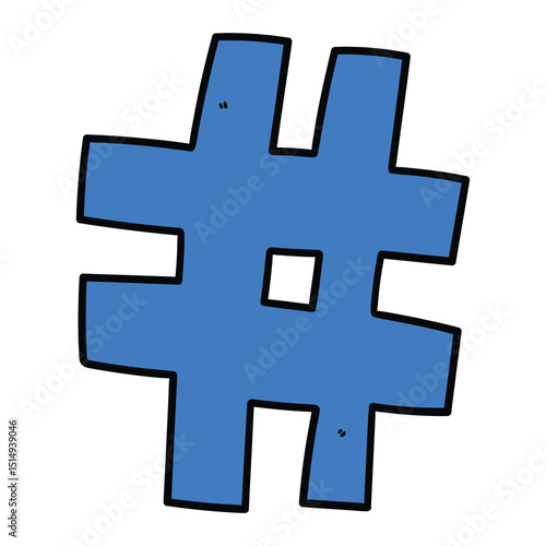 © Павел Костенко, Fototapeta premium Hand drawn cartoon blue hashtag icon on white background.