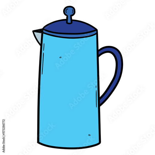 Obraz premium Hand drawn cartoon blue tea kettle on white background.