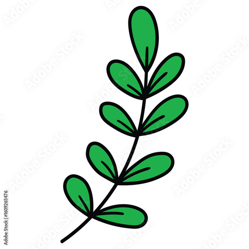 Naklejka premium Hand-drawn cartoon branch with green leaves on a white background.