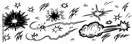 © Mohamed, Obraz premium Hand-drawn Cartoon Explosion Effects: Stars, Bursts & Smoke