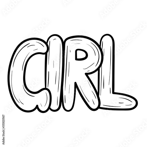 Obraz premium Hand drawn cartoon lettering, word girl, vector doodle illustration.