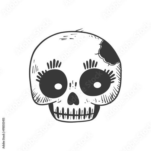 Fototapeta premium Hand Drawn Cartoon Skull with Big Eyes and Eyelashes