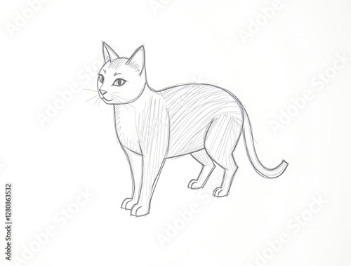 © Michaelyo, Obraz premium Hand Drawn Cat Sketch on White Background for Creative Projects