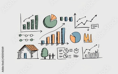 Fototapeta premium Hand drawn charts graphs and house illustrate financial planning