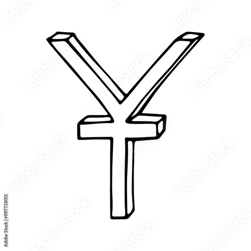 © Daria Shane, Obraz premium Hand drawn chinese yuan currency symbol. Brush stroke doodle. Single element for design