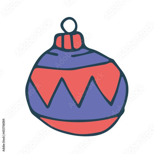 Obraz premium Hand Drawn Christmas Ball colorful Isolated, doodle and organic