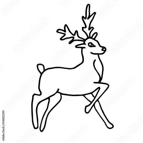 Fototapeta premium Hand-drawn Christmas deer doodle. Simple vector illustration isolated on a...