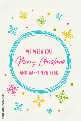 Fototapeta premium Hand drawn Christmas snowflakes. Colourful greeting card. Vector illustration