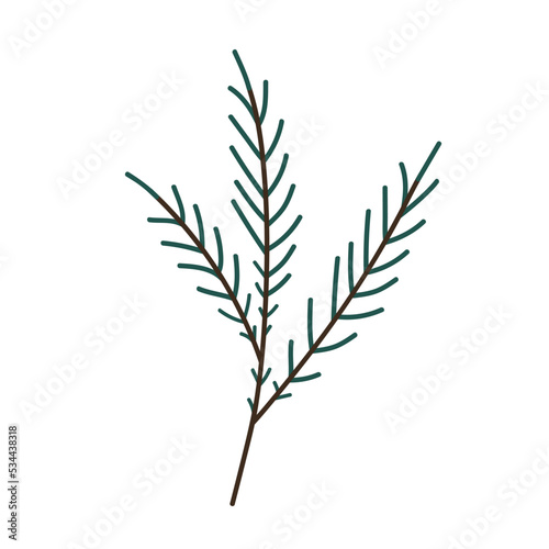 Naklejka premium Hand drawn Christmas tree branch isolated on white background. Decorative doodle sketch illustration. Vector floral element.