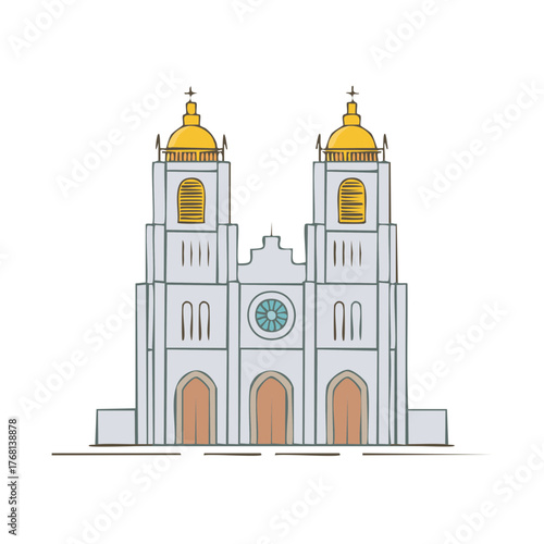 Obraz premium Hand-drawn church with golden domes and towers architectural design