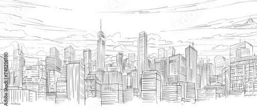 © Keyframe's, Fototapeta premium Hand drawn cityscape emphasizing raw strokes and an imperfect sketch like quality