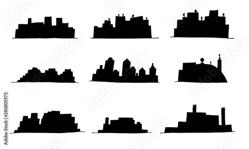 Obraz premium Hand drawn cityscape silhoettes. Doodle town