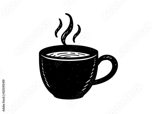 Obraz premium Hand-Drawn Coffee Cup with Steam, Coffee Mug Art, Hot Beverage Graphic