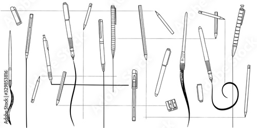 © Franzi draws, Naklejka premium Hand drawn collection of pens, pencils and paintbrushes, webbanner
