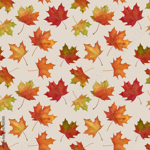 Obraz premium Hand drawn colorful maple leaves seamless pattern