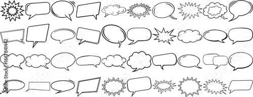 Obraz premium Hand Drawn Comic Speech Bubble Set – Vector Doodle Style Talk, Thought & Chat...