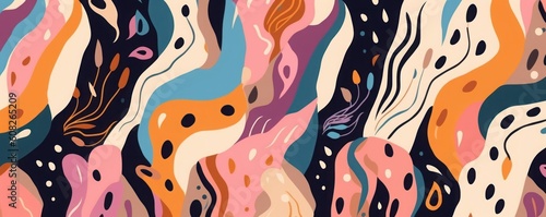 © Digi ART, Obraz premium Hand drawn contemporary cartoon style colorful print. Trendy abstract seamless pattern. Fashionable template for design, Generative AI