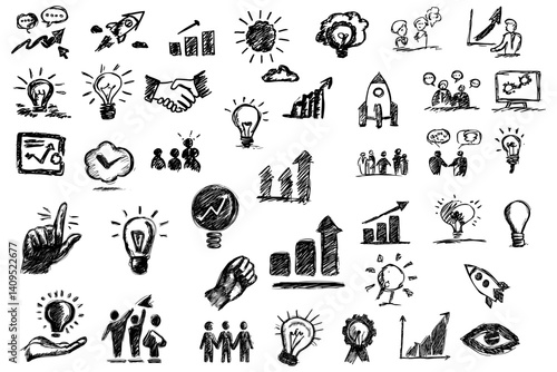 Fototapeta premium Hand Drawn Creative Business Concept Icons and Symbols Set Collection