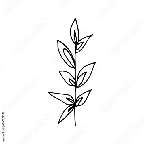 © Мария Падалец, Naklejka premium Hand drawn creative flower. White background. Ink doodle illustration. Hand-drawn vintage, minimalistic black flower. Beautiful vector illustration.