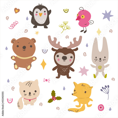Obraz premium Hand drawn cute animal collection. Doodle isolated illustration with animals.