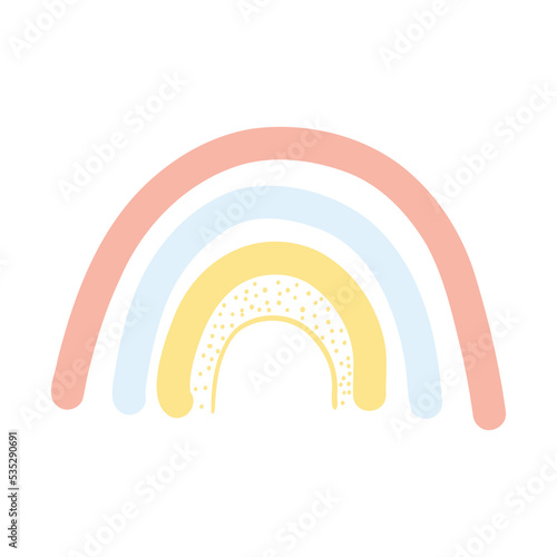 Fototapeta premium Hand drawn cute cartoon rainbow. Vector illustration of modern scandinavian rainbow, kids design element for poster, fabric print, card, kids apparel