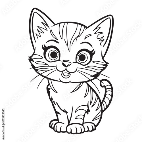 © Shakil, Obraz premium Hand-Drawn Cute Cat Coloring Page Design, Playful Cartoon Kitten Line Art for Creative Projects