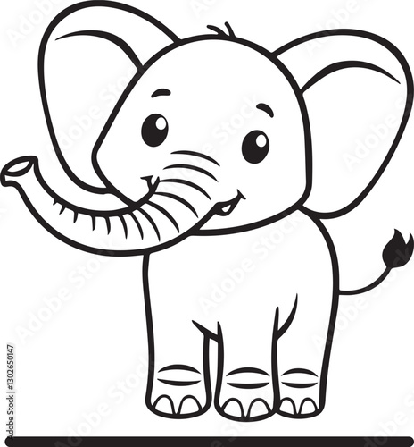 Fototapeta premium Hand drawn Cute Elephant Line Art coloring page