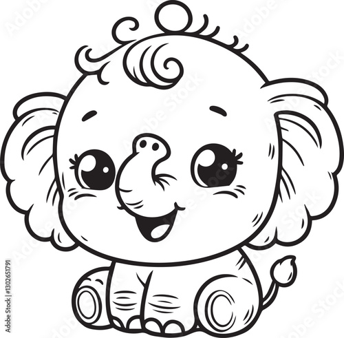 © joydeb, Naklejka premium Hand drawn Cute Elephant Line Art coloring page