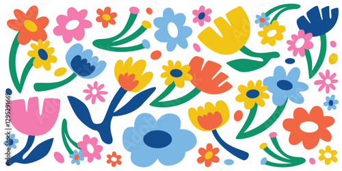 © Ezzy, Obraz premium Hand drawn cute flower shape doodle vector collection