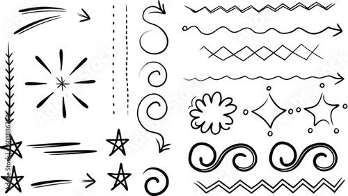 Fototapeta premium Hand Drawn Decorative Arrows & Dividers – Doodle Lines, Swirls, Stars & Borders