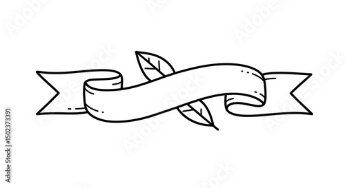 Fototapeta premium Hand Drawn Decorative Ribbon Banner with Leaves