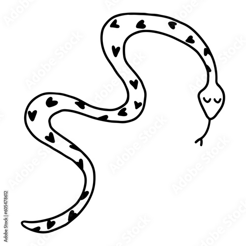 Fototapeta premium Hand drawn design of snake with hearts picture in doodle style
