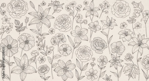 © Nurhansyah, Fototapeta premium Hand Drawn Detailed Black and White Floral Pattern on Light Background for Design
