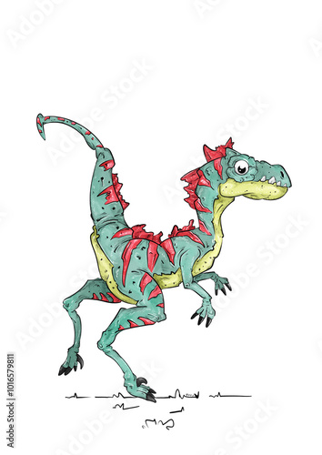 © Alex, Obraz premium Hand-drawn Dinosaur Veloceraptor