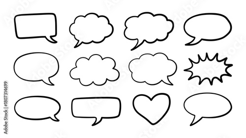 © NUSRAT, Fototapeta premium Hand-drawn diverse speech and thought bubble collection on white
