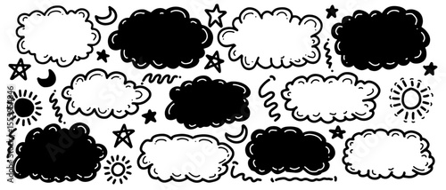 © Wahib, Fototapeta premium Hand drawn doodle clouds and weather elements set vector illustration