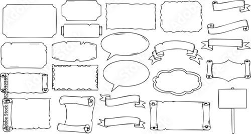 © Shanta Islam, Obraz premium Hand drawn doodle frames banners, scrolls, speech bubbles collection.
