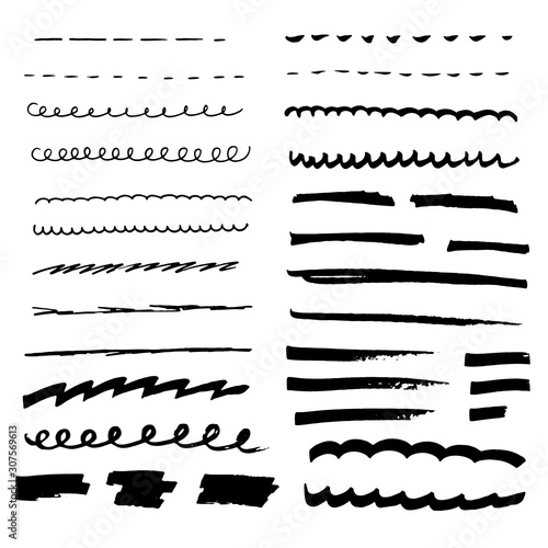 © Marina, Obraz premium Hand drawn doodle lines set. Marker and pen brush stroke line