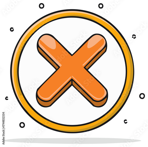 © Мария Лесь-Лисецкая, Obraz premium Hand drawn doodle of an orange X mark icon for no or error symbol