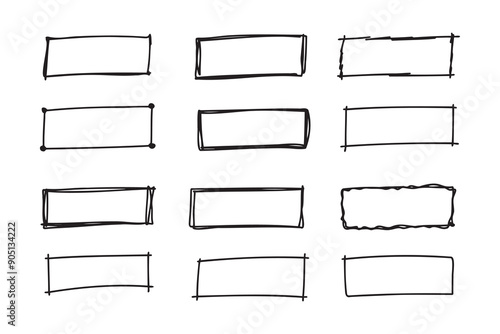 © Yanka, Obraz premium Hand drawn doodle vector rectangle frames. Grungy scribble rectangle frames. Doodle geometric borders. Pen ink empty black text boxes set.
