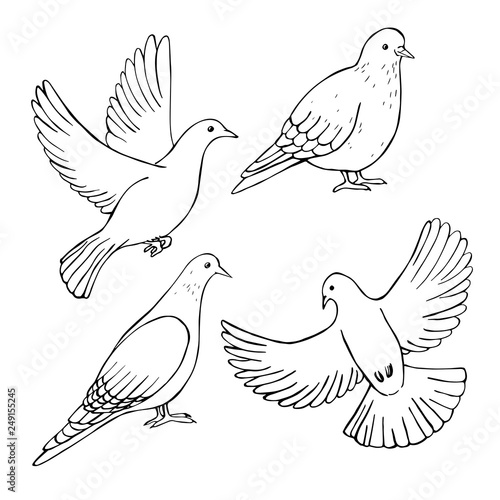 Obraz premium Hand drawn doves . Vector sketch illustration.