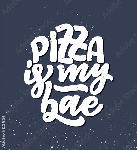 © Artlana, Fototapeta premium Hand drawn ettering quote about pizza. Typographic menu design. Poster for restaurant or print template. Funny concept. Vector