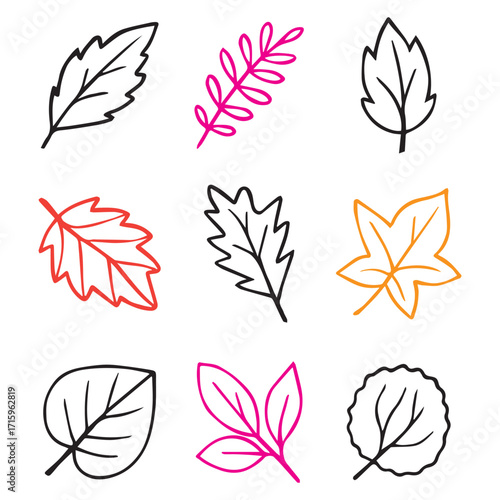 © Dipok, Fototapeta premium Hand Drawn Fall Leaves SVG Bundle