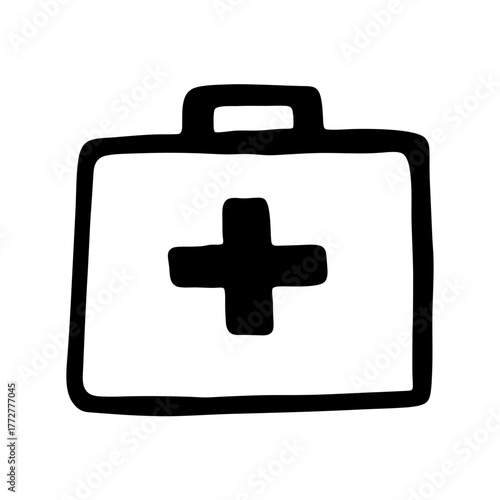 Obraz premium Hand Drawn First Aid Kit Box with Cross Isolated on White