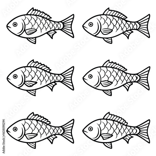 © MMSaddam, Fototapeta premium Hand drawn fish illustrations diverse species isolated on white background