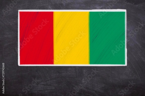 © jr-art, Fototapeta premium Hand drawn flag of Guinea on a black chalkboard