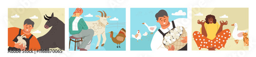 © Macrovector, Fototapeta premium Hand drawn flat animal card collection