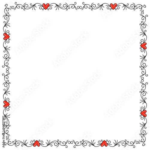 © Nganhaycuoi, Obraz premium Hand drawn flat design hearts border and frame