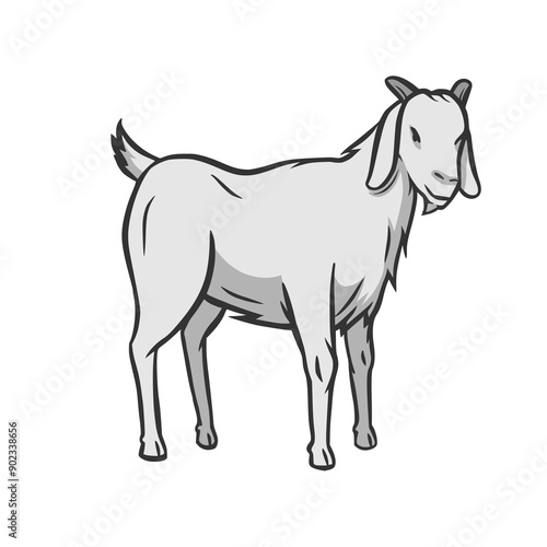 © Pemuda Santaii, Obraz premium Hand drawn, flat, vector goat outline design