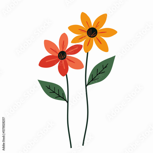 © Chelsea, Naklejka premium Hand drawn floral botanical illustration in Scandinavian style. Cute vector illustration of bouquet of yellow garden flowers
